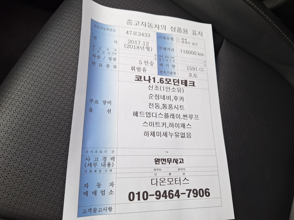 - 무사고 차량입니다.